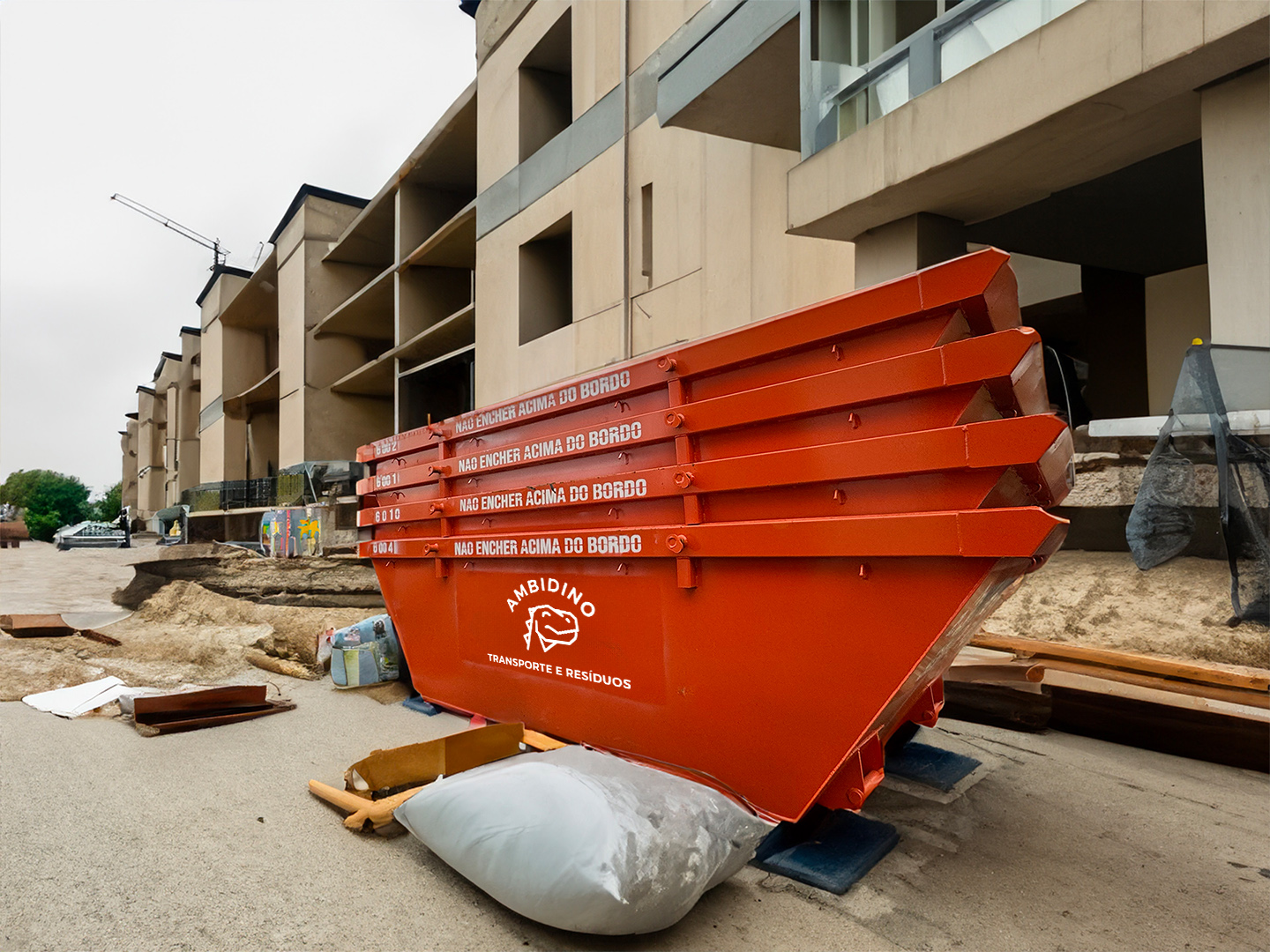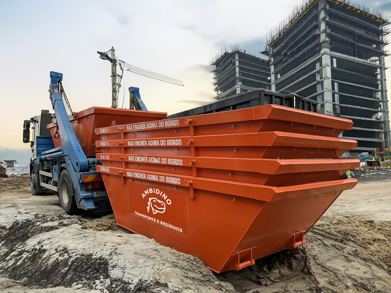 Quando o contentor de entulho estiver cheio, nós vamos levantar ou trocar por um contentor vazio.